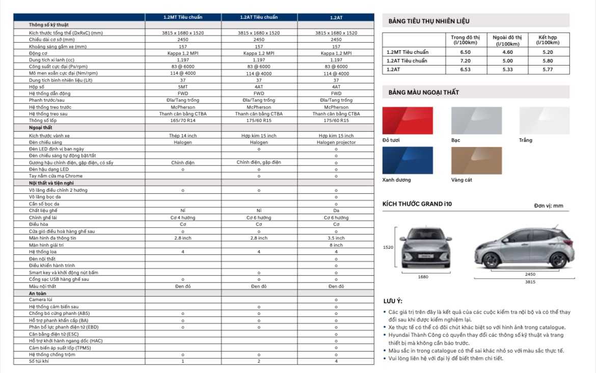 Thông Số Grand i10 Hatchback 2024
